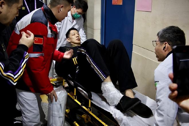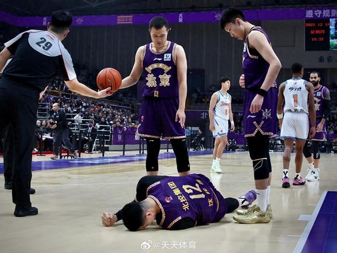 第二個原因是,內線大將沈梓捷早早受傷了,而且再也沒有回到場上。開場僅一分鐘,沈梓捷在籃下對抗準備扣籃的時候跌倒,嚴重崴腳了。當時沈梓捷在籃下對抗李炎哲扣籃時落地失控,右腳踝呈90度外扭曲,隨即倒地發(fā)出慘叫并捶打地板。他無法自主行走,由隊友扶離場,腳踝迅速腫脹并裹上冰袋,隨后被送往北醫(yī)三院檢查。不得不說沈梓捷傷退是北控隊輸?shù)舯荣惖囊粋€原因。